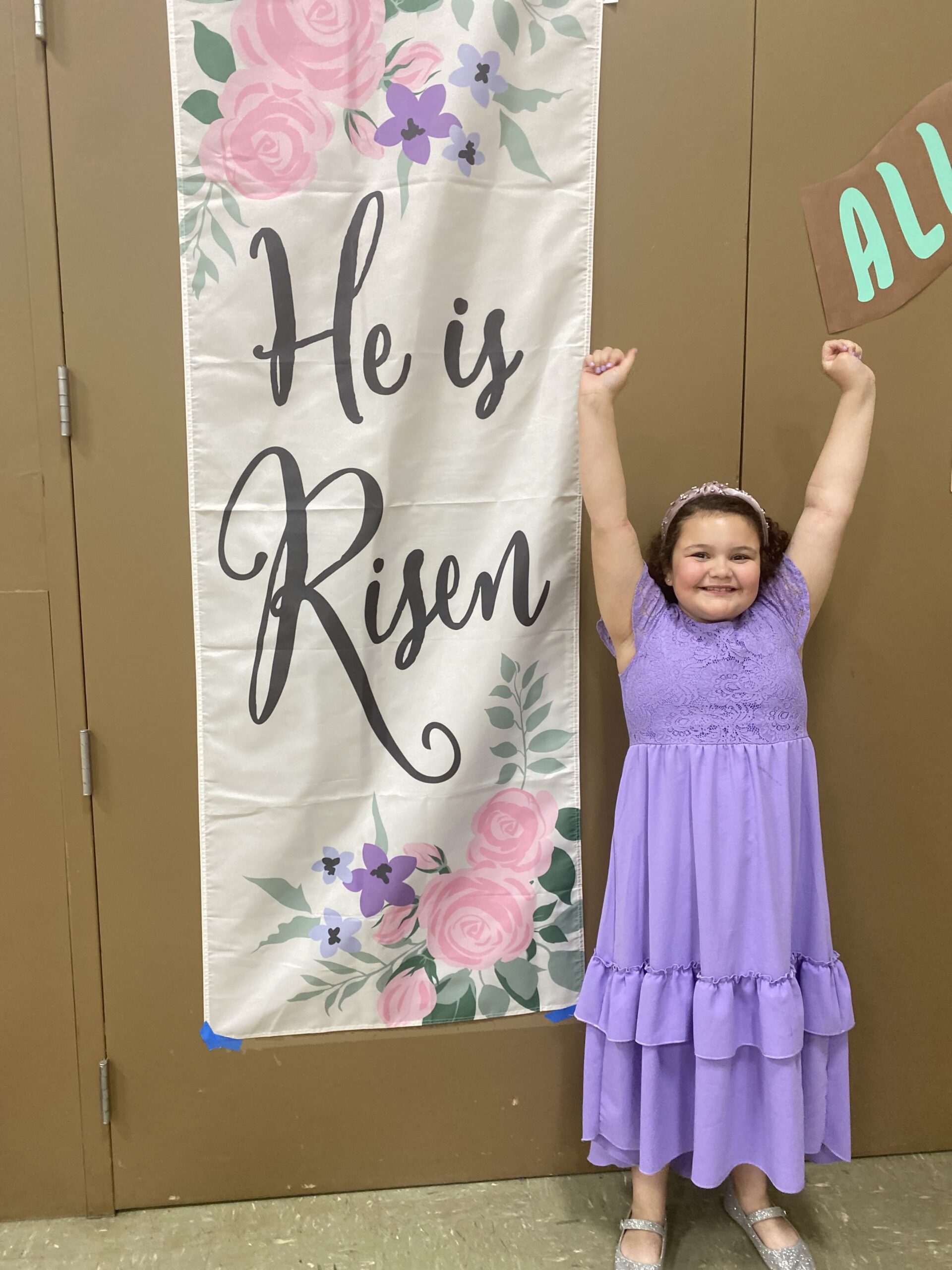 Alleluia! He Is Risen! Sloan celebrates inside the St. Mary Catholic School (Spokane Valley) gym after the Easter Vigil.