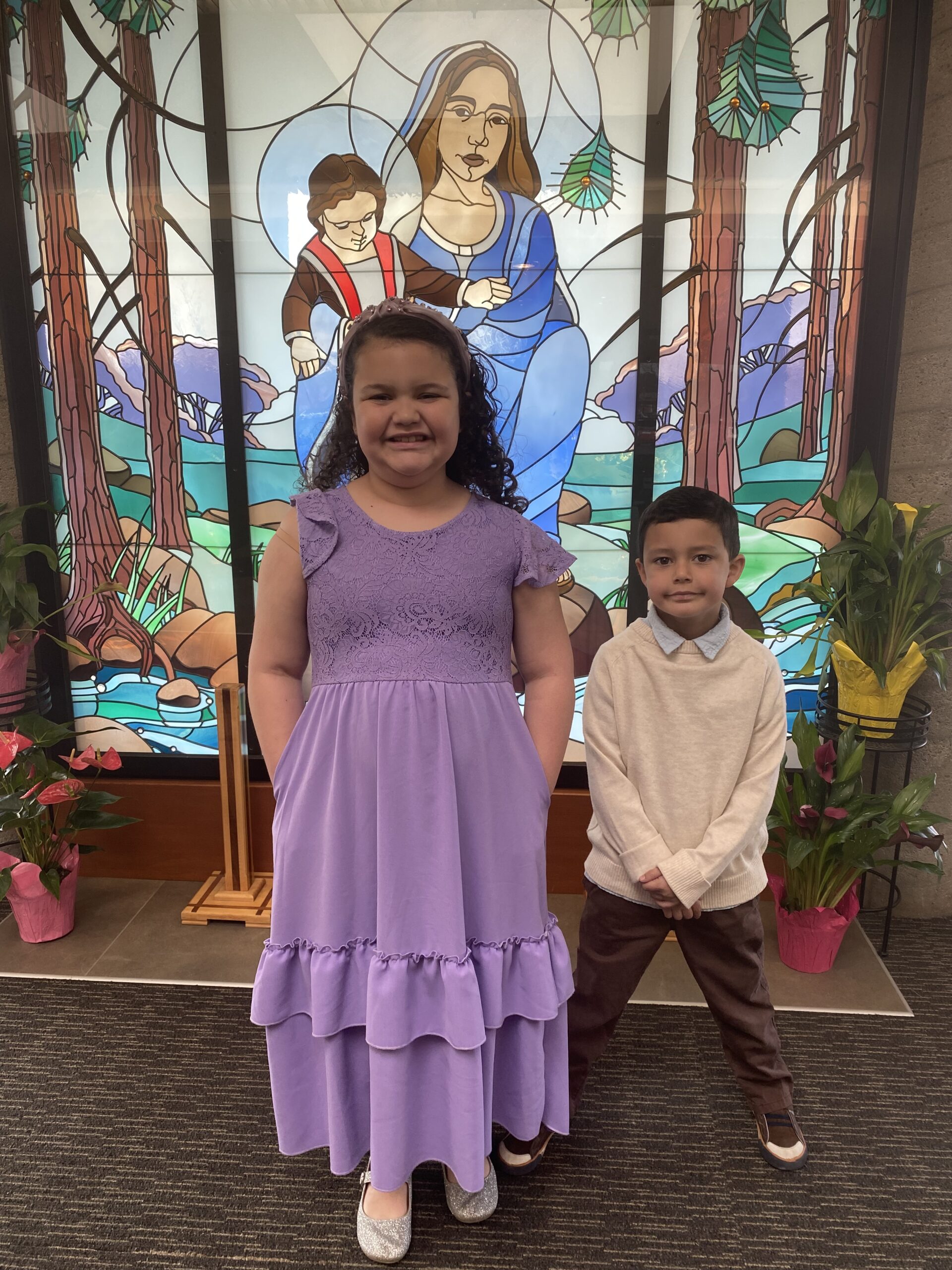 Sloan and Beau in their Easter Sunday best as they stand in the vestibule at St. Mary Catholic Church (Spokane Valley).