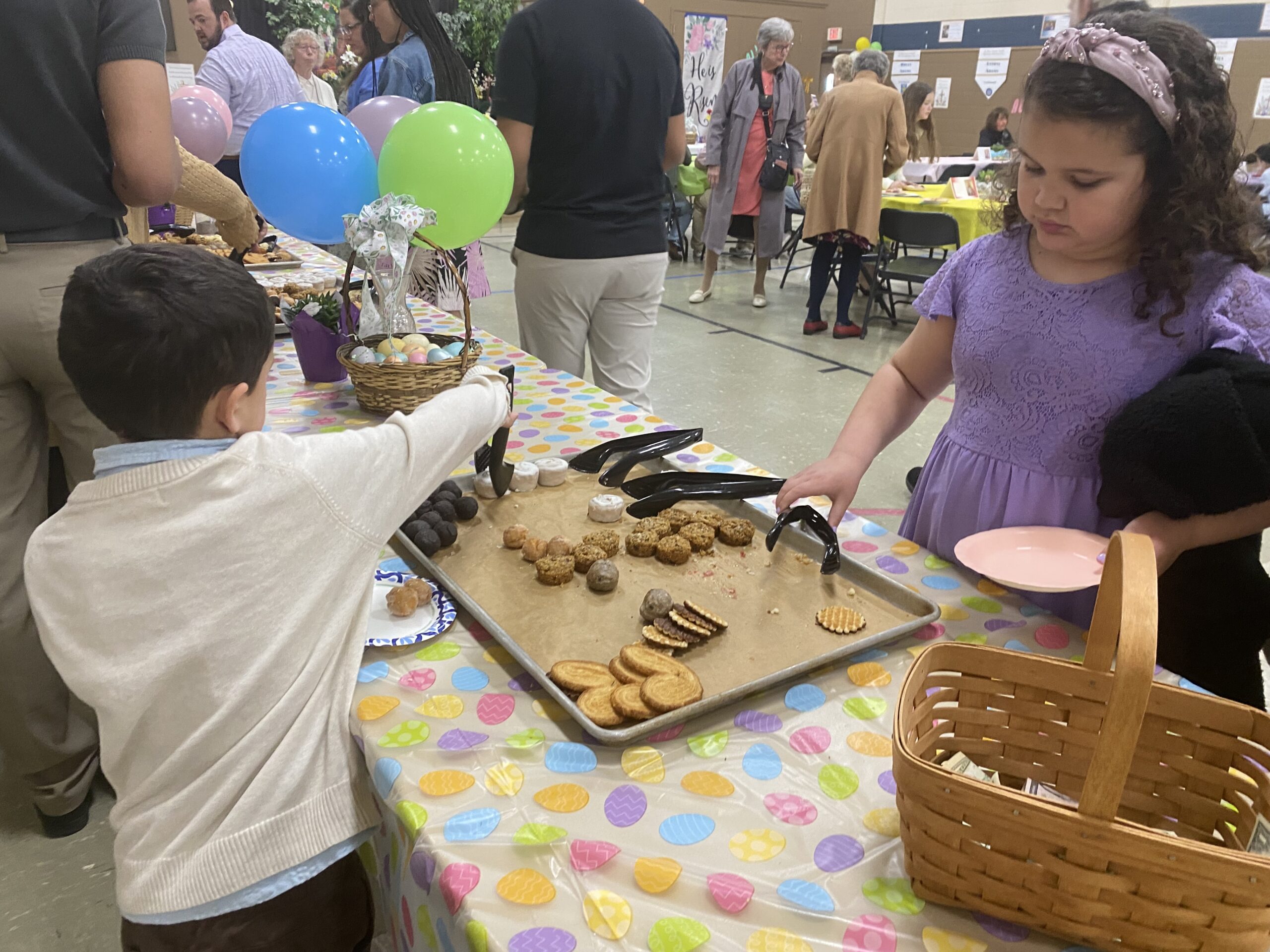 Beau and Sloan help themselves to some sweets after Easter Sunday mass at St. Mary Catholic Church (Spokane Valley).