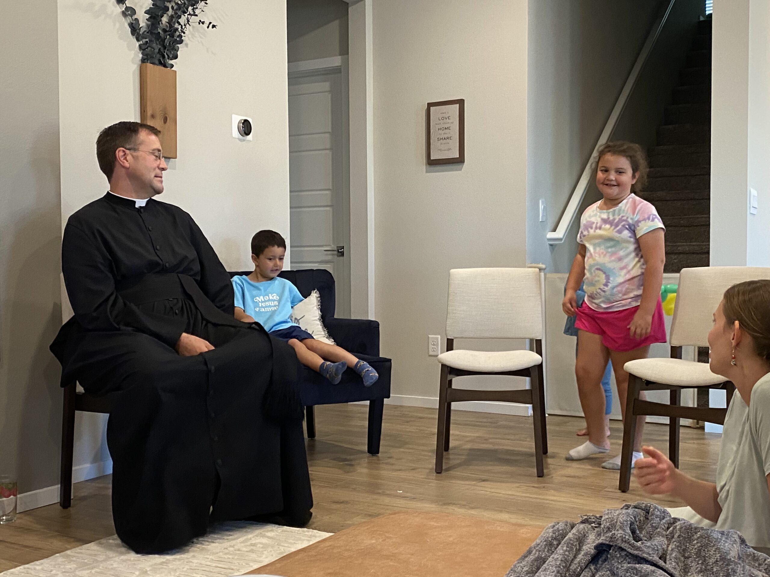My brother and I receive a blessing from Fr. David Gaines right outside of Our Lady of Lourdes Cathedral during Bloomsday 2024.